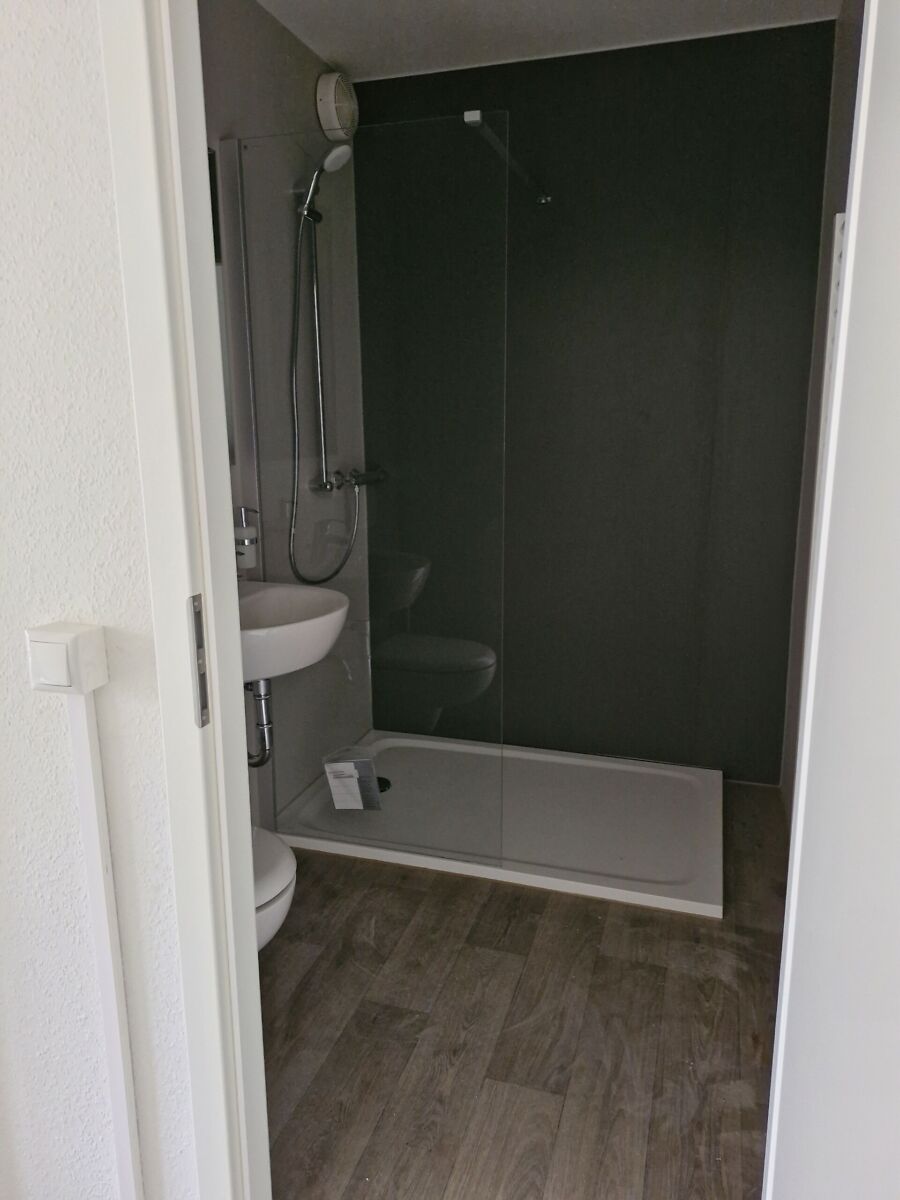 - Handtuchheizkörper und mit modernen Wandbelägen ausgestattet